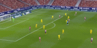 另外马竞的防守并非毫无破绽,第一次踢五后卫,马竞依然会保持着打4后卫时的习惯,也就是防线中路挤压收缩,整体距离与踢四后卫时没有区别。