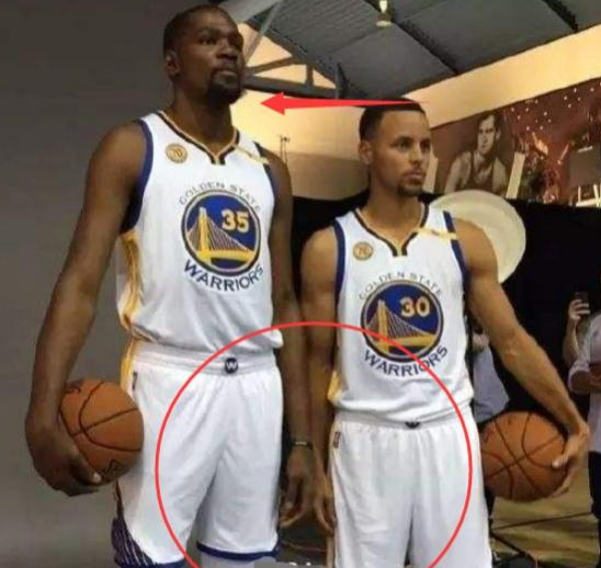库里比杜兰特矮了不少,两人联手期间的挡拆配合,那真的是无解存在。他们在照定妆照的时候,库里和杜兰特都完全站直,一般情况下库里臂展应该比杜兰特长很多,结果由于杜兰特臂展太无解,他的手掌几乎跟库里平行了。有这么巨大身高差距,杜兰特臂展还能跟库里持平,这视觉冲击力太强。