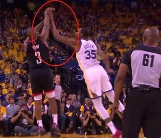 保罗个子确实矮了杜兰特很多,但是保罗臂展在同位置很出色,若不然他的抢断不会这么猛。这一次轮到杜兰特来防他,我们发现就杜兰特的小臂都比保罗整只手都长。尽管这是一次犯规,一样把杜兰特惊人天赋给体现淋漓尽致。