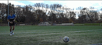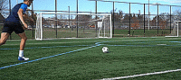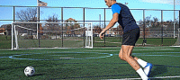 所以我们不需要太追求力量,把第一脚射门想象成传球,只要确保我们的技术正确,支撑脚指向目标,然后穿球而过就可以了。