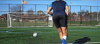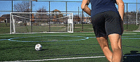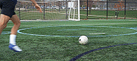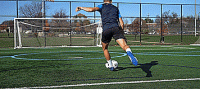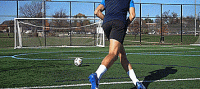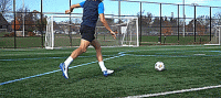 因此,要想打出干脆的一击,我们需要从正中间打过去,如果是新手,建议开始使用我们的脚内侧击球,因为它的表面积更大,击球更准。一旦有了信心,我们就可以用鞋带位置击球,帮助我们产生更多的力量。