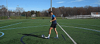 所以当我们训练时,这一点要多关注,支撑脚要放在球前面一些,这样当我们击打球时,球的中心恰好对着脚踝,我们击球会更加干净。