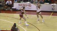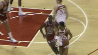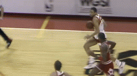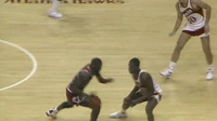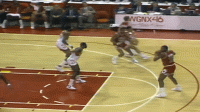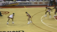 1986年威尔金斯57分vs乔丹41分那场比赛两人的一些精彩进球GIF,感受一下那个时代的劲爆赛场: