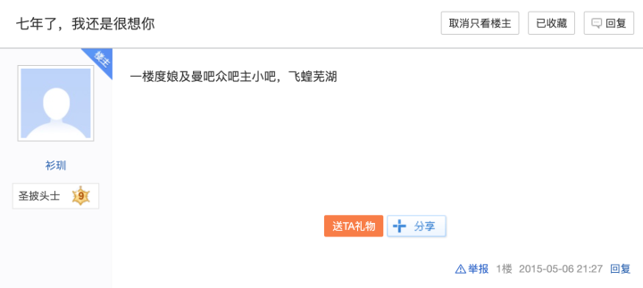 转载:今天各大论坛很火的曼吧神贴《七年了,我还是很想你》