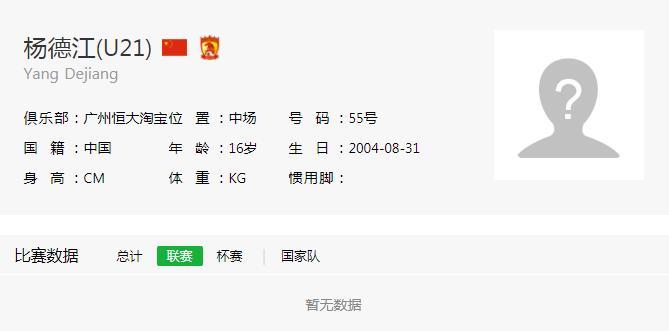 亚洲足球研究社在这次恒大亚冠的27人大名单中,有一位16岁小将杨德江。