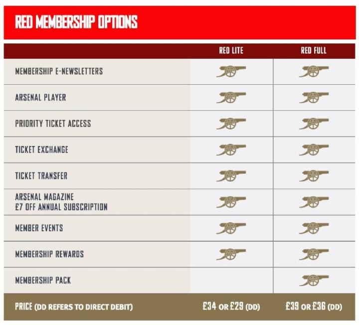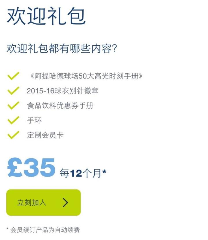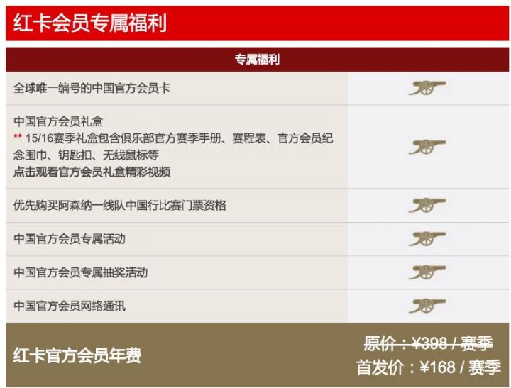 值得一提的是,阿森纳还推出了专门为中国球迷提供的会员服务,权益和会费如下图所示。
