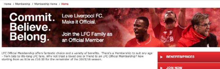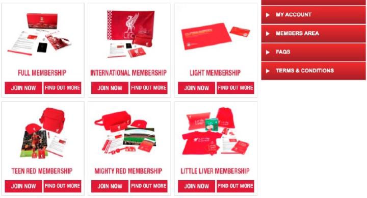 利物浦官网下方菜单有“Membership”字样,点击进入下一页。
