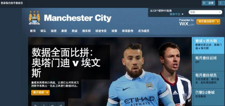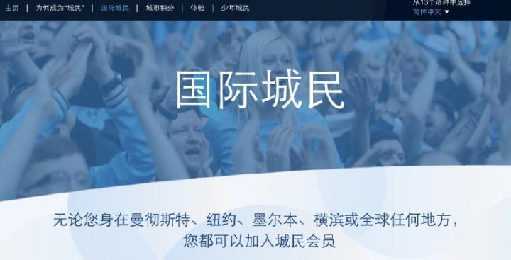 曼城近年来很重视球迷培养,他们的官网是唯一会明确提示有中文网站的。
