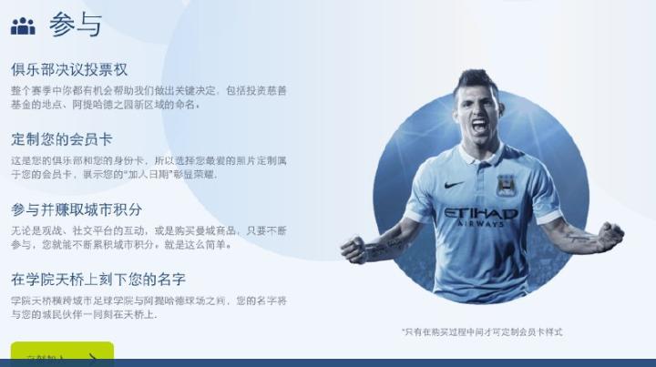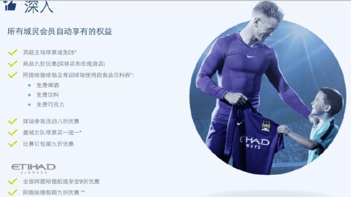 和本土一样拥有优先购票权和球票优惠,并且当曼城来中国时,还可以得到特殊入场券。