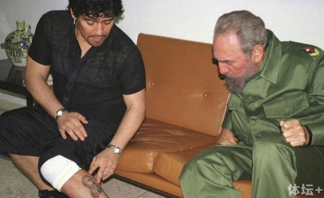 1986年马拉多纳访问古巴时与卡斯特罗相识,2000年马拉多纳饱受毒瘾的困扰,卡斯特罗把他接到古巴为其治疗。2005年,马拉多纳代表阿根廷一家电台采访卡斯特罗,并赠送给他自己当年在阿根廷国家队踢球时的球衣表达敬意。为了表达对卡斯特罗的崇拜,马拉多纳在他41岁的时候在自己的左腿上文了卡斯特罗的头像。