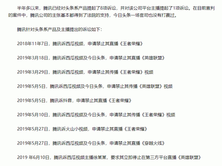 答案是肯定的,从两三年前开始,腾讯就已经开始对 “ 头条系 ” 的短视频平台进行过一波 “ 扫荡 ”,对这些平台上自家游戏的直播进行了诉讼。