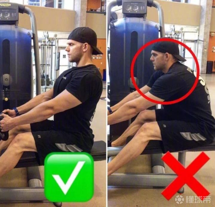 作为初级练背动作 在做坐姿划船最喜欢塌肩溜背,往往做完了第二天后背不疼脖子疼。 [跳舞]这里想给大家引入一个概念 “顶峰收缩” 只有达到峰值收缩才真正困难的,要想达到顶峰收缩有二种方法:在顶峰时停留1到2秒;专注重复顶峰次数。 每次在顶峰收缩的时候要感受肩胛骨夹在一起的感觉。 [棒棒哒]这里有一个四个注意可以教你快速掌握这个练背动作,减少脊椎受伤。 1、始终保持挺胸抬头,不要有前够的动作(图1) 2、保持身体平衡不要有后仰动作(图2) 3、动作不要只做一半,不然练的全是手臂(图3) 4、腿不要伸直锁死,弯曲可以保持平衡(图4) [吐舌头]小贴士:另外如果你的目标是增长肌肉,连续拉5个以上还感不到吃力一定要加大重量,你拉了没感觉,那能叫练背么? 最后做坐姿划船的时候,一定要找到“做作”的感觉,挺胸抬头收腹,保持呼吸,剩下的事就是感受来自肩胛骨的酸痛吧。