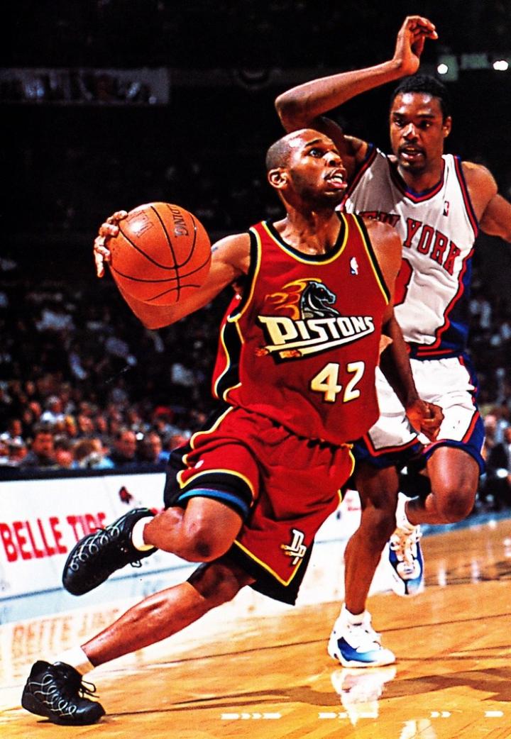 在北卡,斯塔克豪斯也是风光无限。他在1995年入选全美最佳一阵和ACC赛区最佳一阵,他的42号球衣也在北卡退役。1995年被76人选中后,斯塔克豪斯曾被称为“下一个乔丹”,他倒也不负众望,菜鸟赛季就得到19.2分3.7个篮板3.9次助攻,入选最佳新秀一阵。