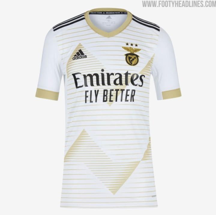 20-21赛季本菲卡第三球衣是由阿迪达斯定制设计的,球衣以白色基底为主色调,配合黑金的队徽和金色的条纹设计。