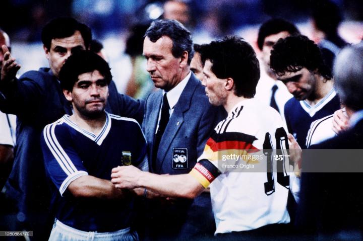 1990年意大利世界杯,虽然马拉多纳的身体状态并不如四年前了,但是依然在队内发挥着巨大作用,对阵巴西八分之一淘汰赛给卡尼吉亚送出世纪助攻绝杀对手,率队再次闯进了决赛,遗憾未能成功卫冕。