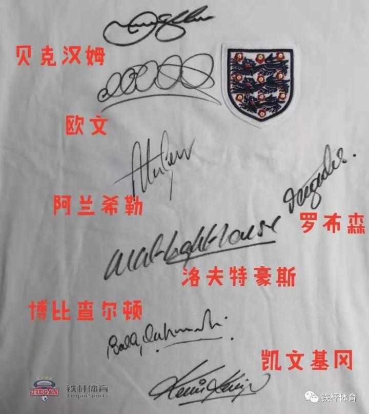 给这件白色球员签名的8个人中,有三个人曾拿到金球奖,查尔顿和欧文各拿到一次,凯文基冈则拿到两次。