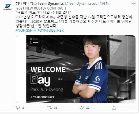 DYN官宣:上单Rich续约、打野Juhan、中单Bay加入战队
