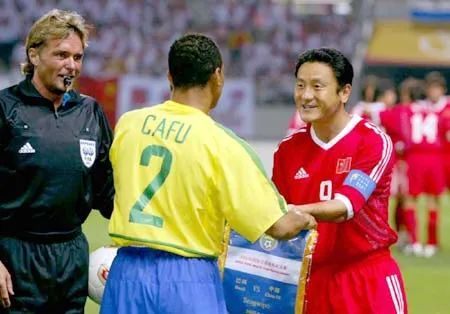 图 |中巴战,马明宇与卡福交换队旗