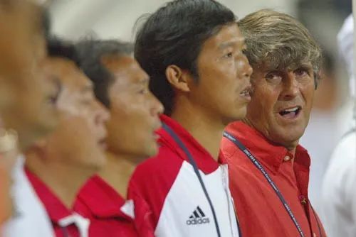 图 |中哥战,米卢及助教焦急地关注局势
