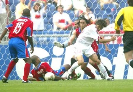 6月4日,中国队世界杯首秀对阵哥斯达黎加。由于范志毅、祁宏等均有伤在身,为避免中轴线全部带伤上阵,教练组对阵容进行了调整。开场仅仅5分钟之后,中国队在场面上便迅速地陷入了被动。第21分钟,孙继海在与对手拼抢时,左脚脚面遭到重创,被曲波换下。下半场,就在宿茂臻、于根伟准备替补上场时,中国队在4分钟之内连失两球,0:2,中国队的世界杯梦想遭到当头一棒。