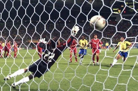 开场后,中国队打得不错,显示出了一定的攻击能力,虽然后防线上缺少范志毅和孙继海两员大将,但中国队仍然组织起了几次有效的进攻。但是,卡洛斯任意球直接入网打破了场上的僵局。此后,中国队在场上的局势与首场0:2输给哥斯达黎加的比赛十分相似,虽然在控球方面并不吃亏,但后防线上却有很大的空当,这使得中国队的防守对于巴西队的射手里瓦尔多而言简直就是形同虚设。