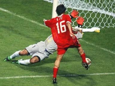 图 |中土战,杨晨击中门柱瞬间