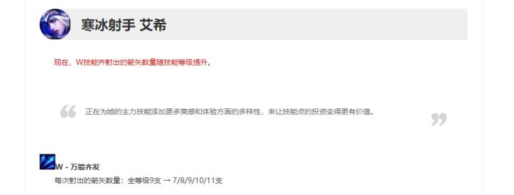分析:削弱前期增强中后期,艾希在后期团战中W的实用性更进一步。