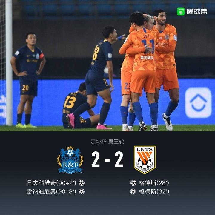 第93分钟,雷纳尔迪尼奥禁区外远射破门,完成绝平!鲁能2-2富力!