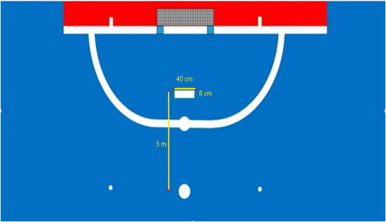 增加第二罚球点任意球时门将防守位置的限制线。