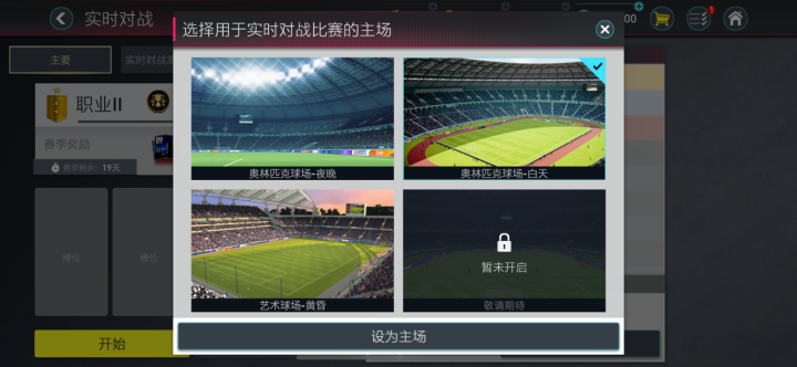 (在实时对战中你可以自由选择球场)