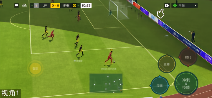 为了满足从不同视角操作球员的需求,全新版本特别增加视角实时转换功能。比赛过程中,玩家只需轻点屏幕右上角的按钮,就可在三个不同远近程度的视角中无缝切换。