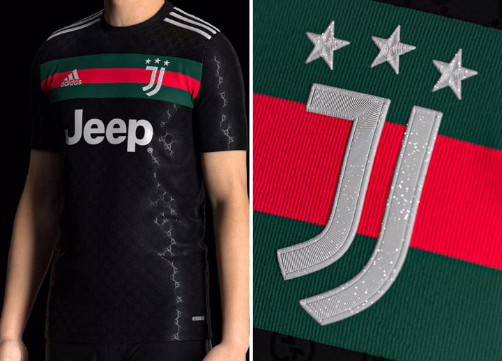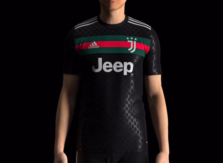 ENJOYZ足球概念设计师SETTPACE为意甲尤文图斯足球俱乐部所打造的三件Juventus × Gucci概念球衣中的最后一件终于问世,与此前的两件概念球衣相比,这件黑色球衣拥有迷人的光泽。