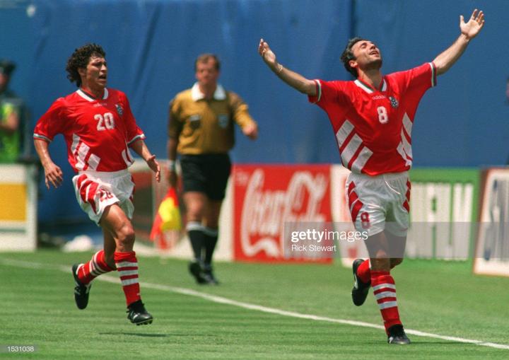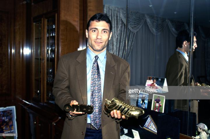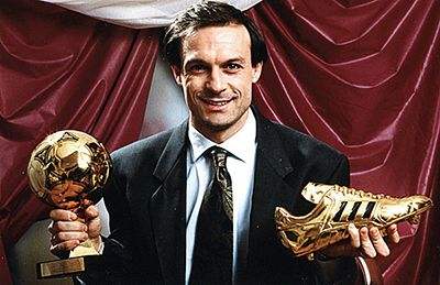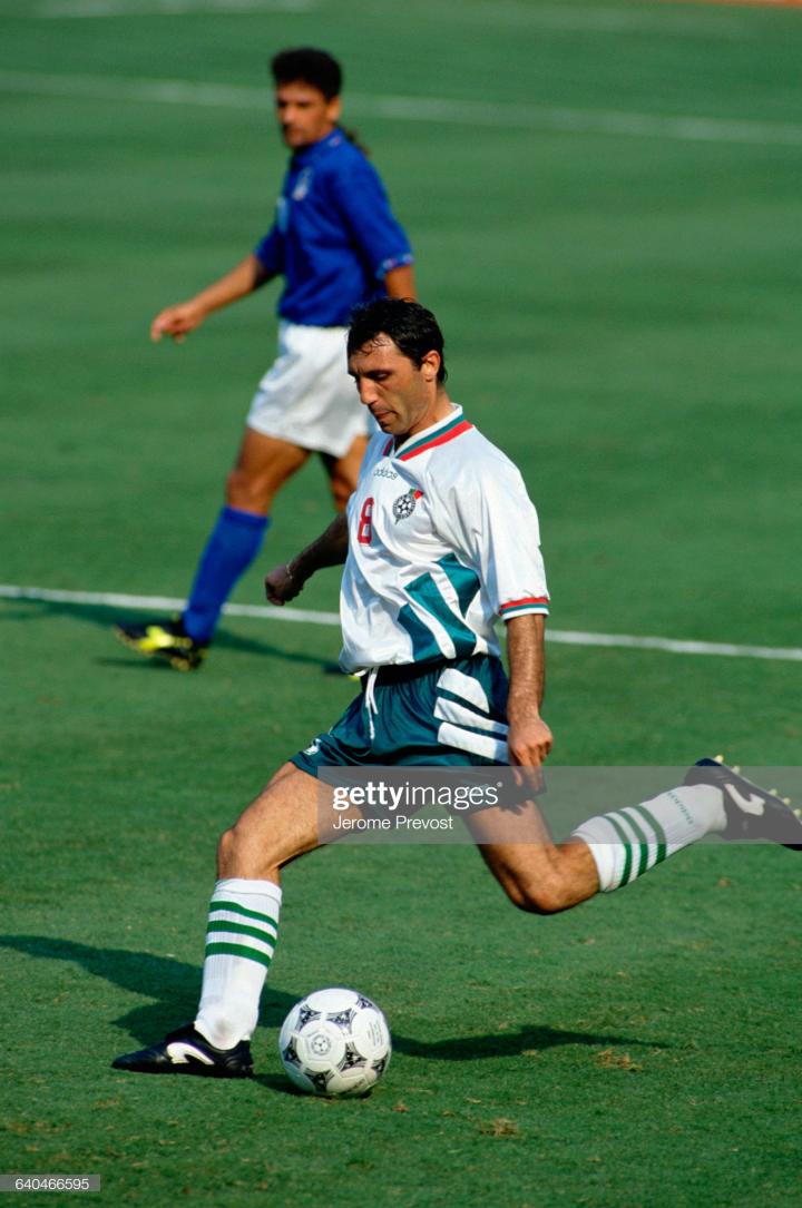 1994年世界杯有两位金靴奖得主,一位是保加利亚球王斯托伊奇科夫,他当年带领保加利亚力压法国在预选赛出线,但从后面正赛看,保加利亚当之无愧。斯托伊奇科夫表现更是绝对巨星级,带领保加利亚杀入世界杯四强,在小组赛和淘汰赛,各打入三球,最著名的是对阵德国的四分之一决赛打入的那个任意球,斯托伊奇科夫当时使用的球鞋和斯基拉奇一样,也是意大利品牌kronos,而且是以他名字命名的专属款式。