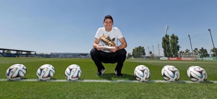 2014年世界杯金靴是哈梅斯罗德里格斯,哥伦比亚金童在巴西的表现可谓无与伦比,他打入6球,而且还是世界波进球。帮助哥伦比亚杀入八强,j罗当时是f50的代言人,穿的是奶牛世界杯配色的f50,世界杯之后,他被媒体看好将成为足坛帝星,adidas还给他定制的金靴的奶牛战靴,但是此后j罗的发展却没有我们想象的那么顺利,在转会皇马后,他只在首个赛季展现了实力,在齐达内上任后,就成为了替补。