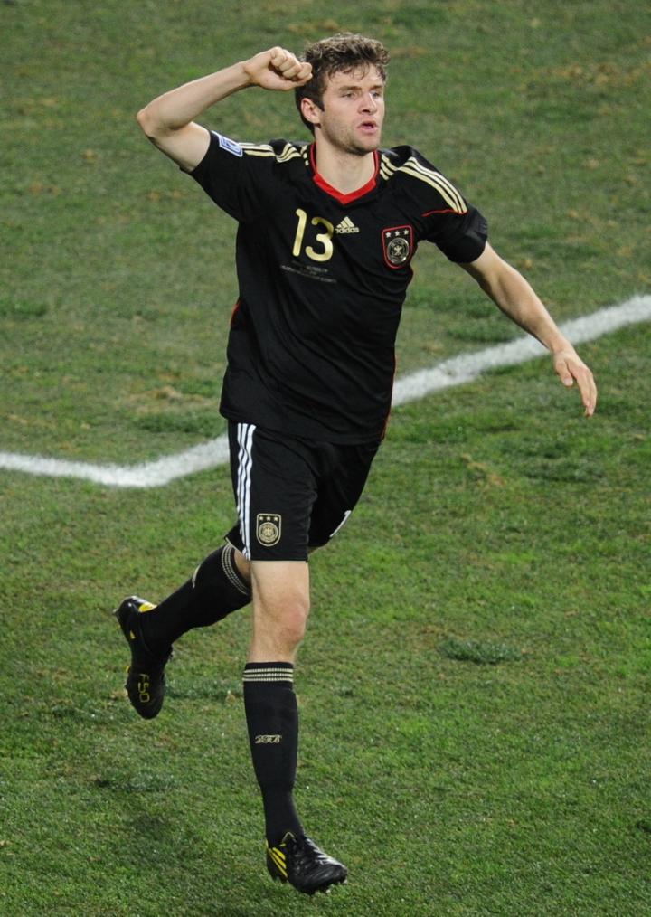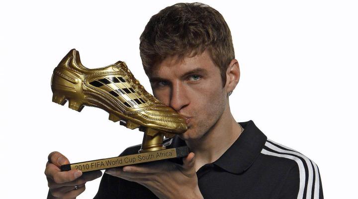 2010年世界杯金靴又是德国队的托马斯穆勒,当年的德国队刮起青春风暴,21岁的穆勒最终打入5球获得世界杯金靴,他也是最年轻的世界杯金靴得主。当时甚至马拉多纳都不认识穆勒,在和阿根廷队的赛前训练时,老马看穆勒吊儿郎当的样子以为是个德国球童,用西班牙语教训了穆勒,说他不可以乱闯球场,穆勒听不懂西班牙语只能呆呆看着球王。没想到在之后的比赛,穆勒为德国队首开纪录,最终德国4比0大胜阿根廷,最终还获得了世界杯金靴。