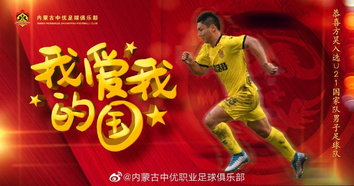 U21男足补充征调方昊参加集训,内蒙古中优送祝福