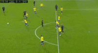 (这一球,也是边路跑开了空间,德斯特的前插 让加的斯防守队员很难受,他要在想调整防守姿态去更好的防守就变得很难,因为转身有一个时间差 。 而破密集防守靠的就是这一下的时间差)