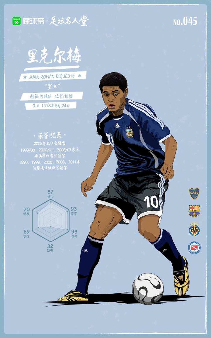 这名古典前腰的偶像是马拉多纳,所以他选择追随其脚步,加盟博卡,成为糖果盒球场的又一传奇,尽管当初河床给出的年薪是博卡的一倍,但里克尔梅依旧坚持,他的个性从那时便初现端倪。