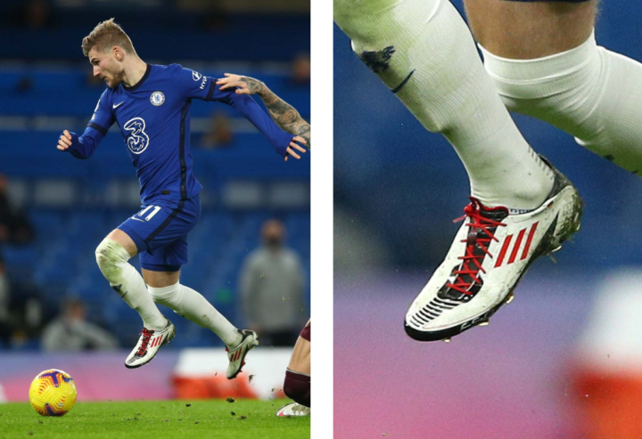 蒂莫-维尔纳在对阵利兹联的比赛中穿着同样来自"Memory Lane"系列的F50 Adizero Prime X Ghosted战靴,这款战靴采用了2011年发布的鞋面,并将其置于现代X Ghosted大底之上。