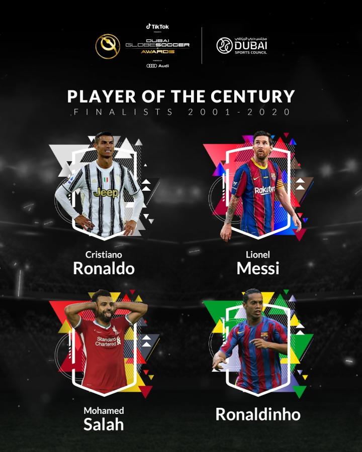 环球足球奖21世纪最佳四人候选:C罗、梅西、萨拉赫、小罗