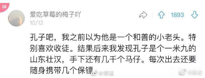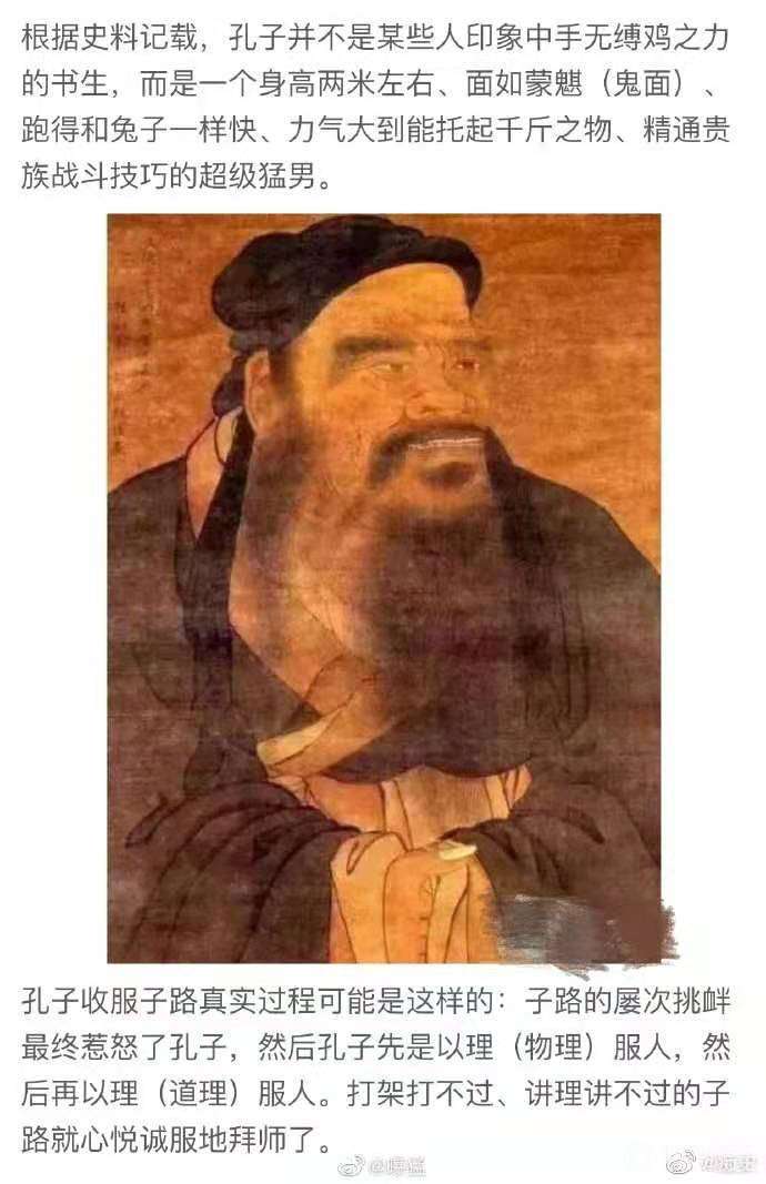 奇奇怪怪的知识又增加了——孔子其实是个身高近两米...故有所思xyz @懂球帝2020-12-08 19:41奇奇怪怪的知识又增加了——孔子其实是个身高近两米的山东大汉,曾带着几千马仔周游列国,以德服人..... 展开更多