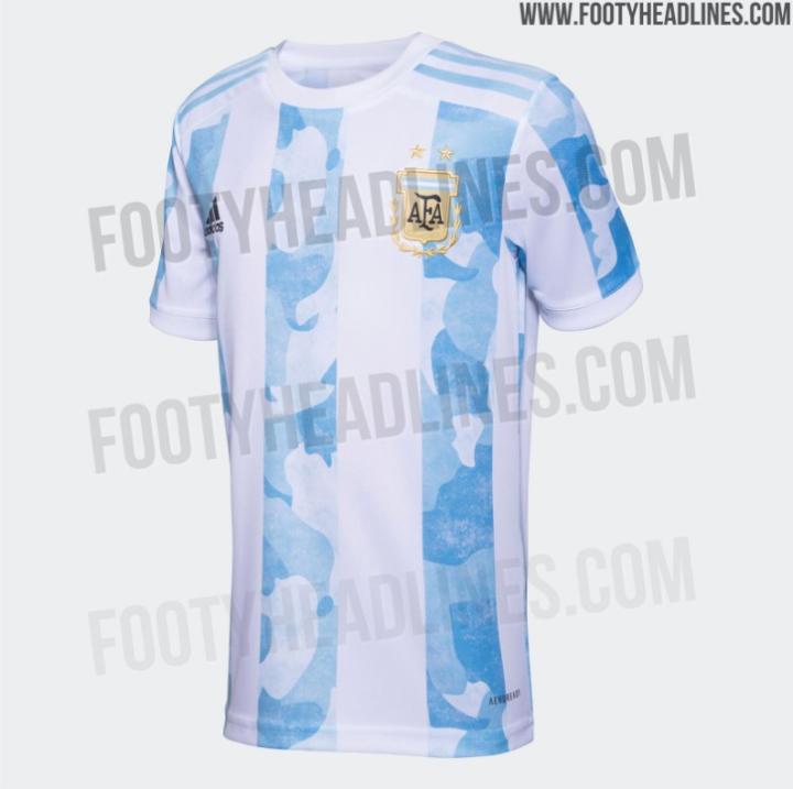 足球装备网站FootyHeadlines曝光了阿根廷国家队20/21赛季的全新主场球衣谍照,新球衣在沿用阿根廷传统蓝白配色的同时,还加入了类似迷彩纹的设计,令人眼前一亮。