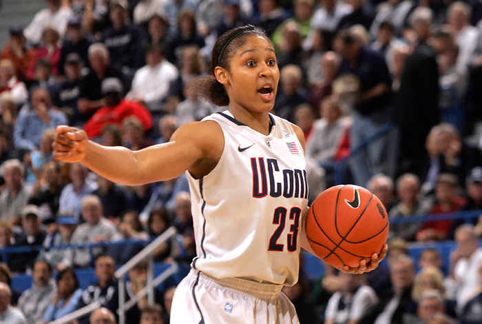 从此,胜利和冠军也总是和摩尔相伴,她曾率所在高中缔造了90场不败的神话。而在就读于康涅狄格大学时,她也只输掉3场比赛,连续2年包揽约翰-伍登奖和奈史密斯奖。2011年WNBA选秀,摩尔被明尼苏达山猫选为状元秀。