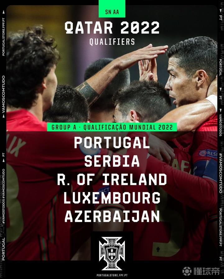 2022年卡塔尔世界杯欧洲区预选赛抽签中,作为种子队的葡萄牙与塞尔维亚、爱尔兰、卢森堡以及阿塞拜疆同分在A组。目前,葡萄牙的世预赛赛程已经确定。