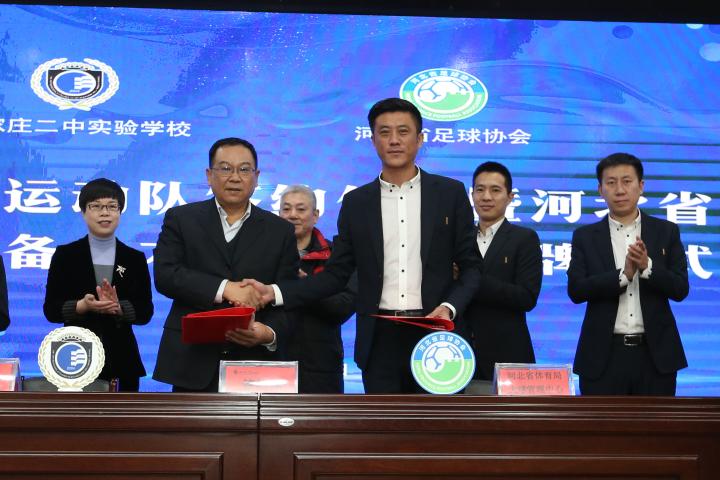 河北省足球协会后备人才培养基地挂牌仪式同时举行。河北省体育局大球运动管理中心、省教育厅体卫艺处、石家庄二中实验学校和省足协相关领导出席签约及挂牌仪式。