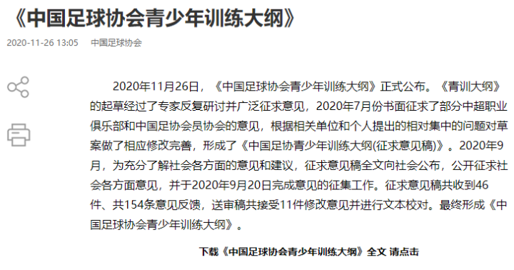 鲁能青训11月26日,《中国足球协会青少年训练大纲》(以下简称《青训大纲》)正式公布。长达121页的文件明确了中国足球的青训发展目标、球员发展理念、比赛理念、训练理念、执教理念以及1v1和无球战术能力是球员发展的基础等。