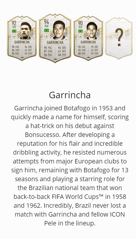 为巴西队赢得1958和1962年两届冠军做出了巨大贡献,速度飞快的边路进攻球员,他是那个时代和贝利齐名的超级球星,也是巴西队仅次于贝利的第二球星。