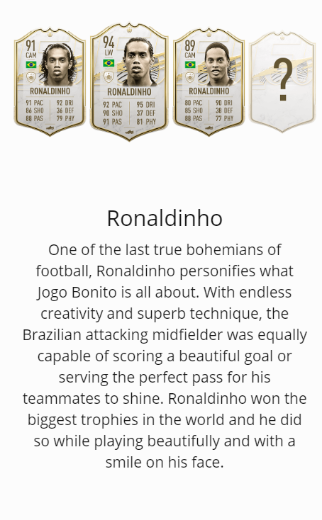 在FIFA21中的101位球员,每位球员都有三个版本的卡,其中最高配的卡是该球星生涯最巅峰时期的数据,在这些101位传奇球星的巅峰数据中,仅有10位退役球星的能力值达到了94以及94以上,让我们来看看分别是哪些球员吧。