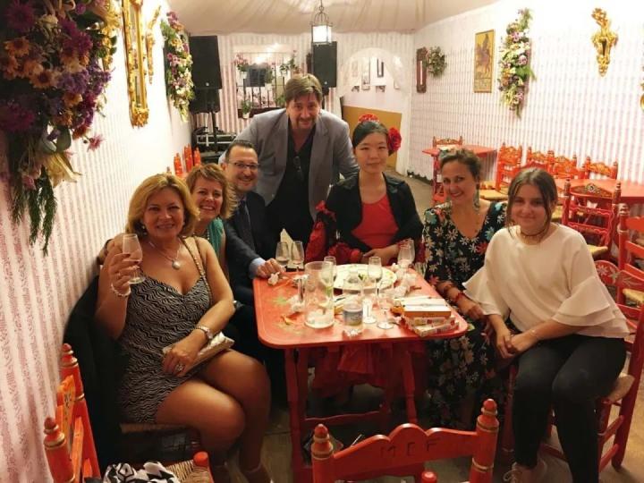 2017年4月,夏日风在塞维利亚当地体验了著名的“四月节”,房东借给她一身弗拉明戈的裙子。