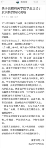 前一阵子南京师范大学外国语学院学生悬挂旭日旗事件,引起愤怒后学校给出回复是这样的。